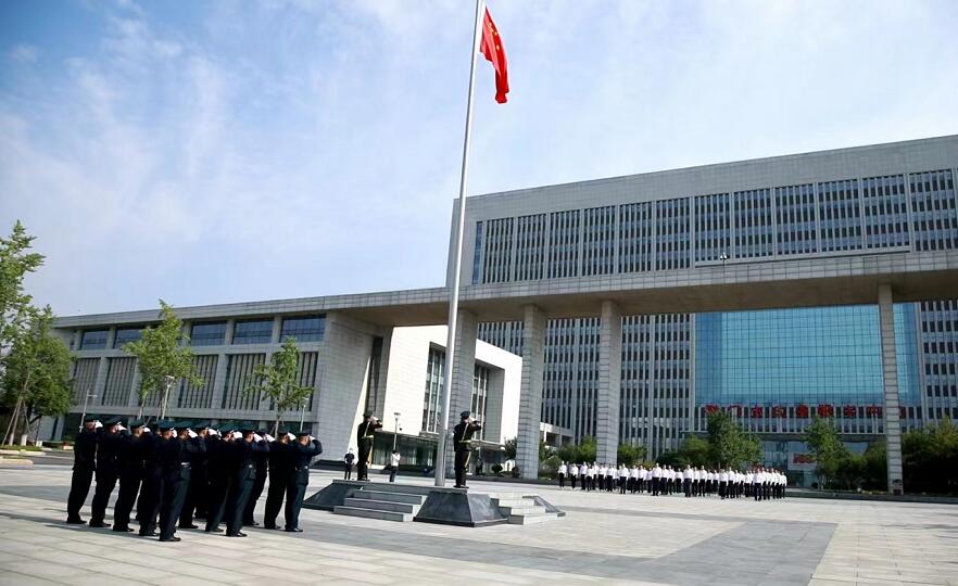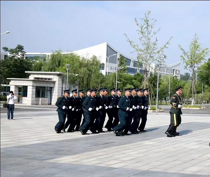 荊門市機(jī)關(guān)事務(wù)管理局和湖北獵鷹保安公司在荊門市政府服務(wù)中心門前舉行七一升旗儀式